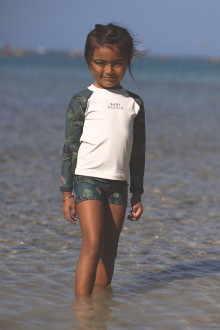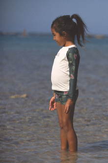 女の子も男の子も着用できる、ユニセックスなラッシュガードセットです。