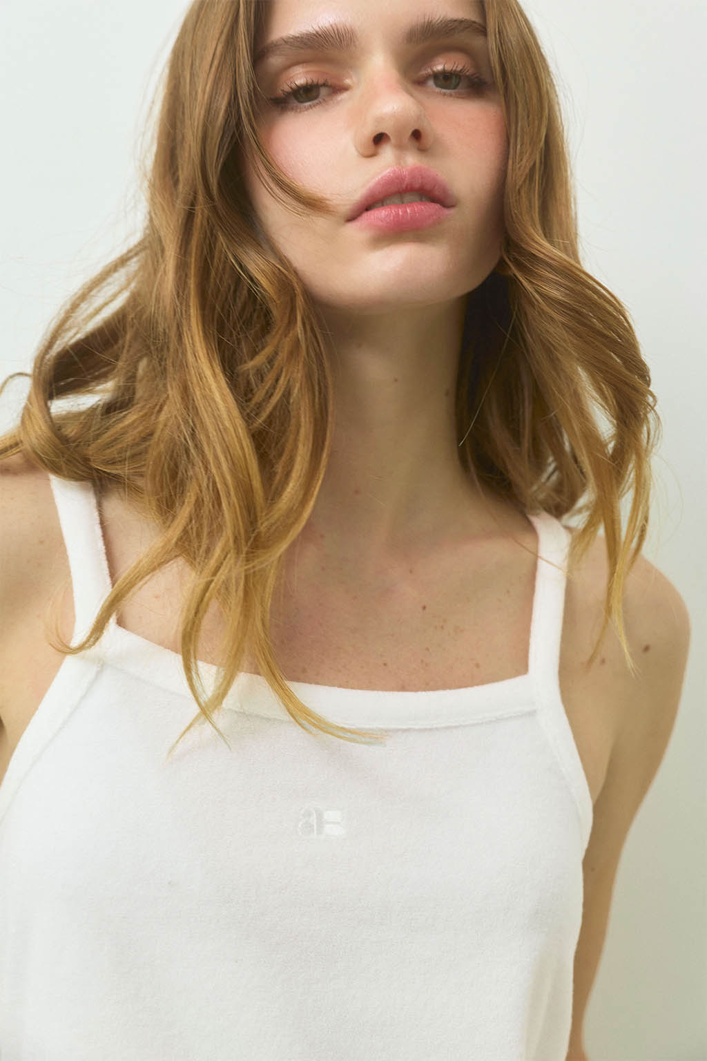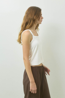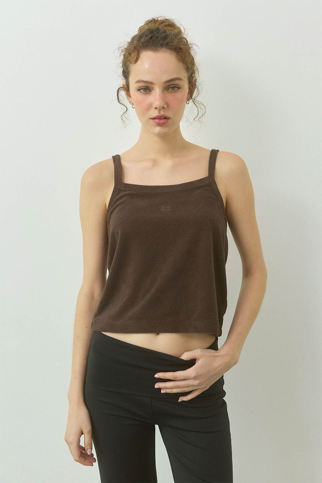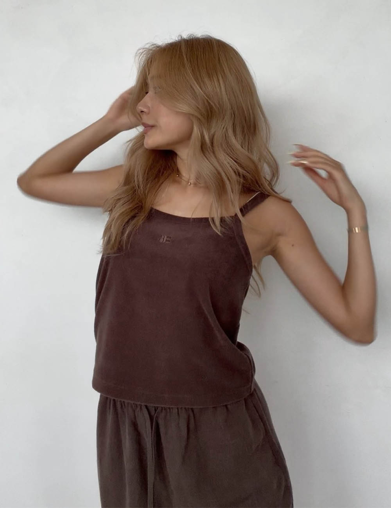 やわらかな風合いが魅力の、パイル素材のキャミソールトップス。