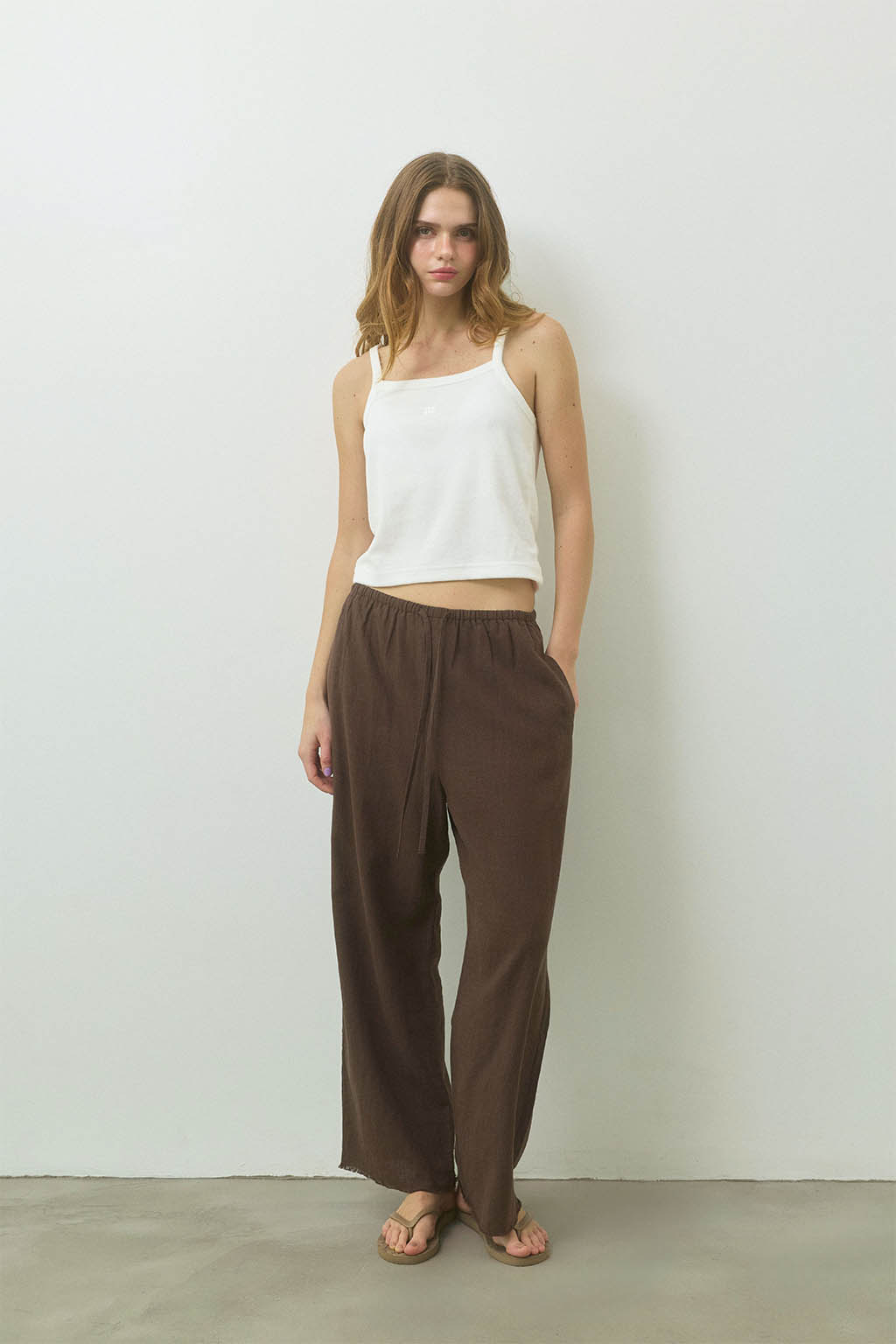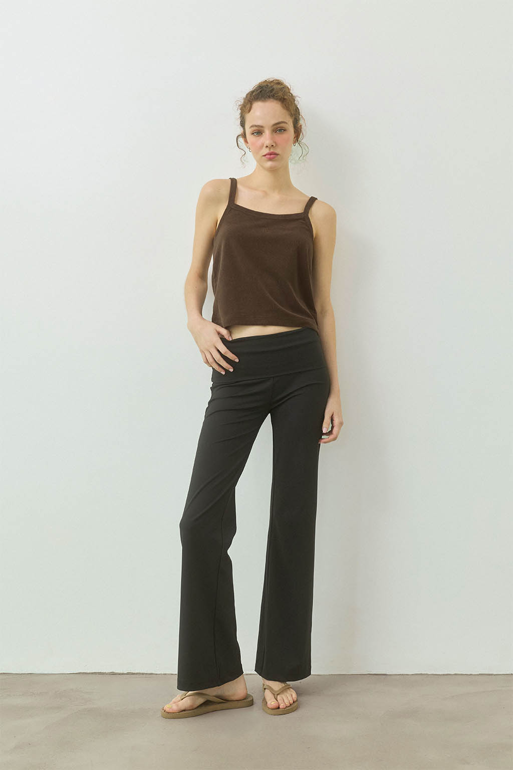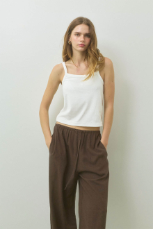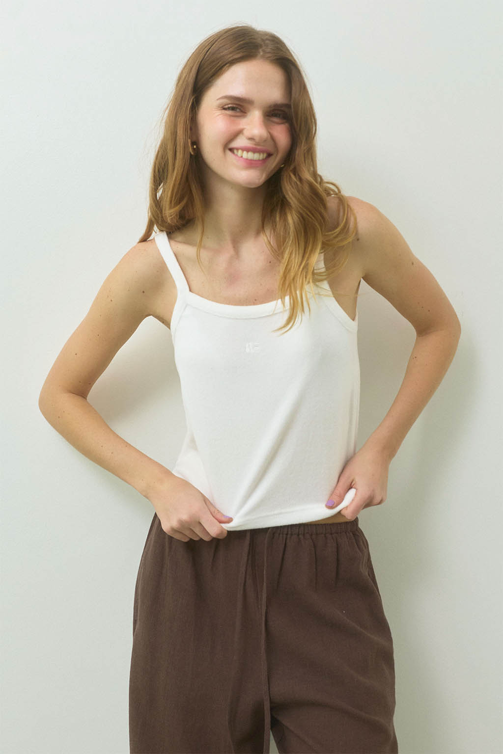 やわらかな風合いが魅力の、パイル素材のキャミソールトップス。