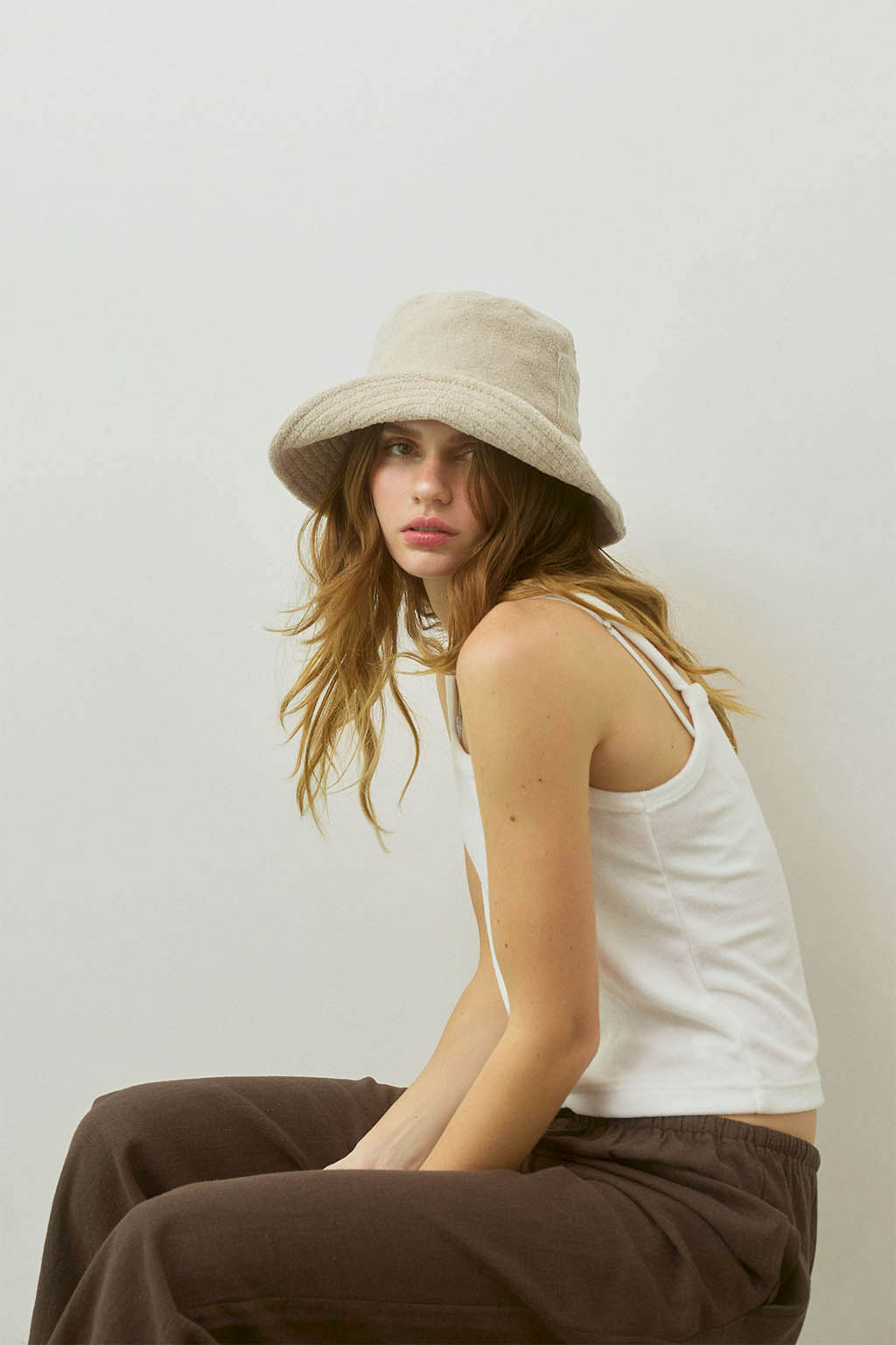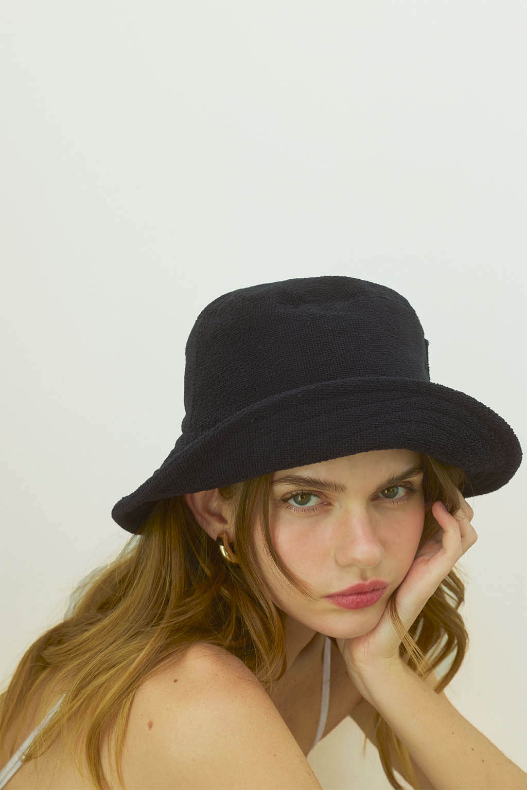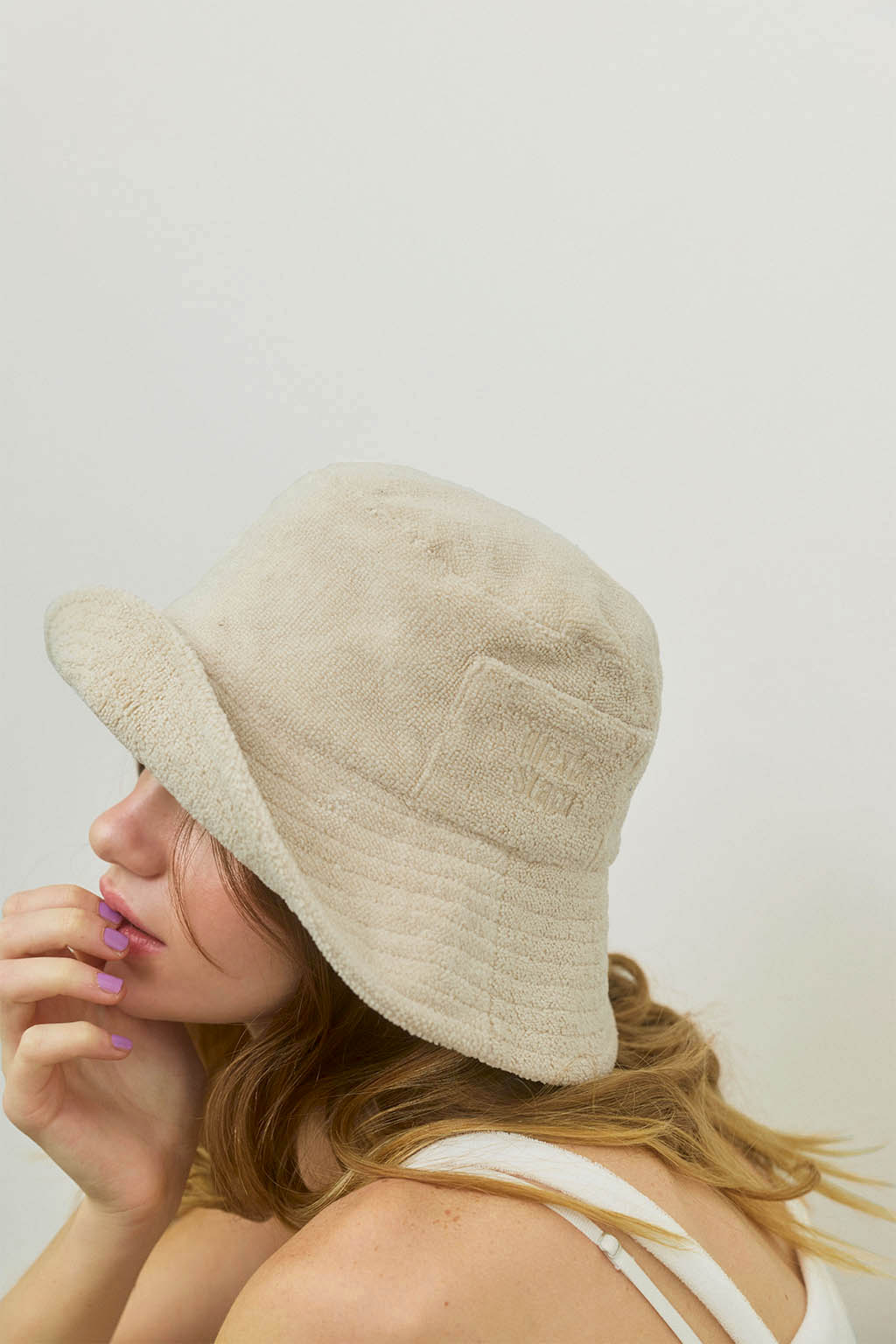 柔らかなパイル素材が、心地よく包み込むバケットハット。
