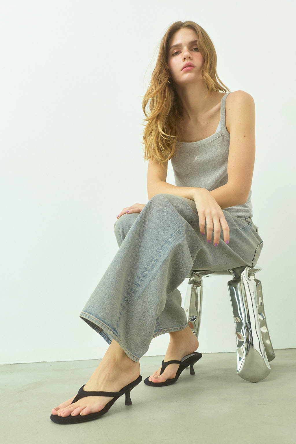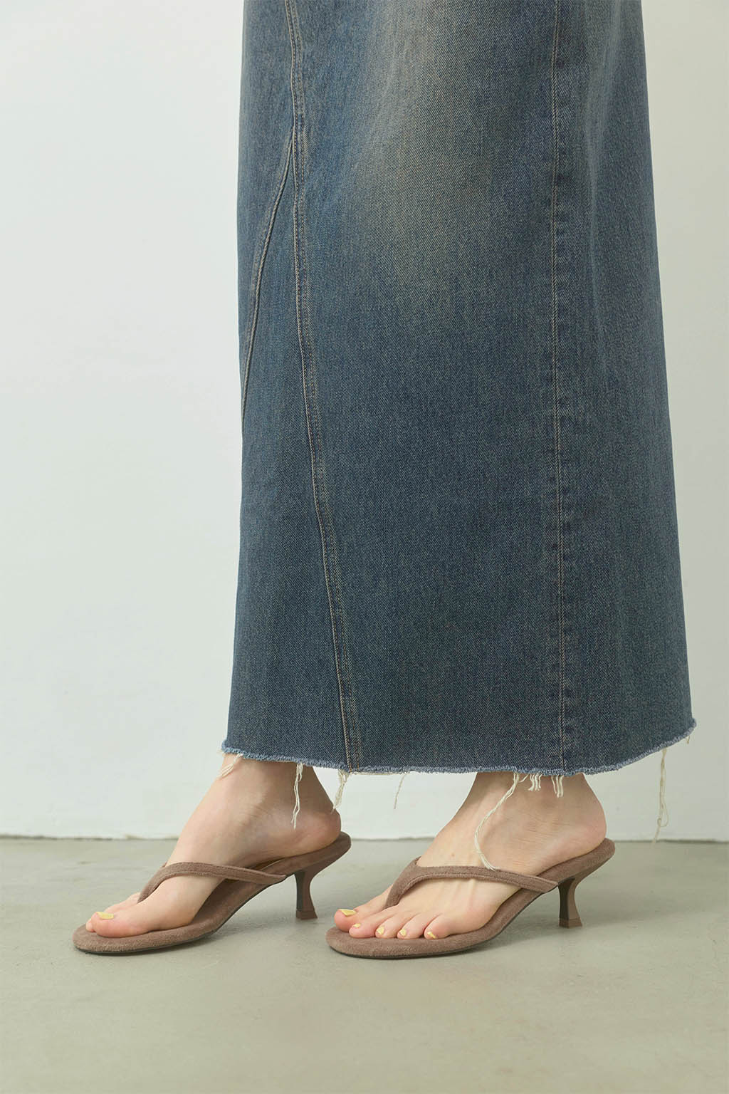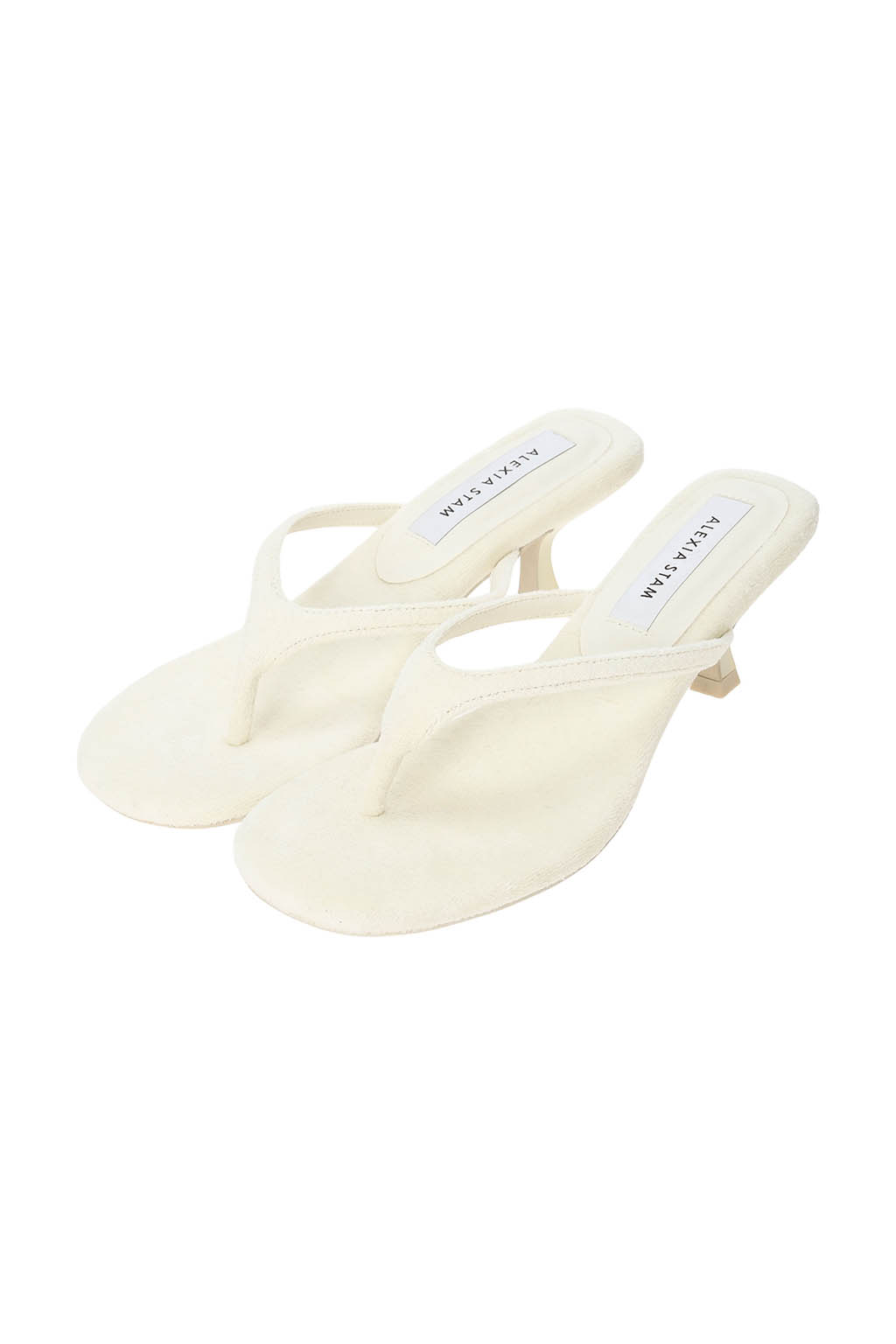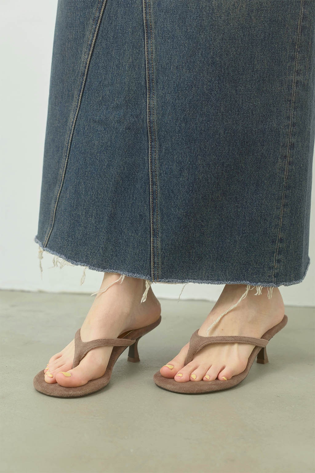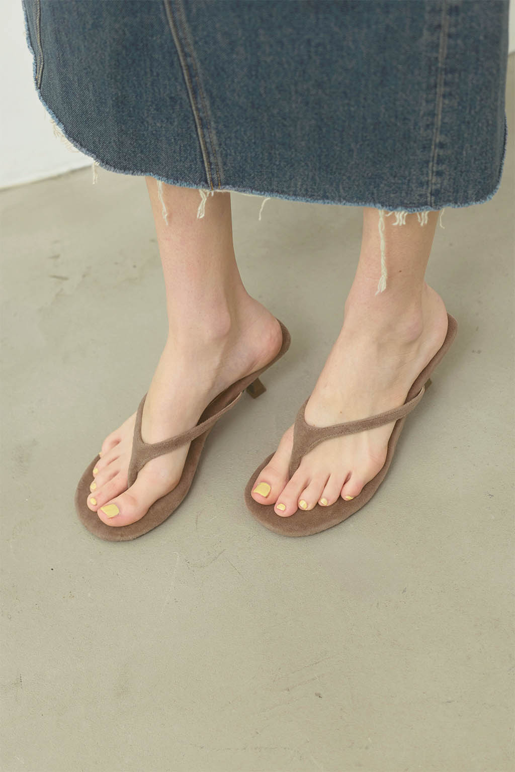 華奢なトングデザインと程よい高さのヒールが、足元を女性らしく美しく演出。