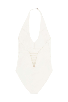 ホルターネックはアジャスター付きで、体に合わせて細かな調整が可能。