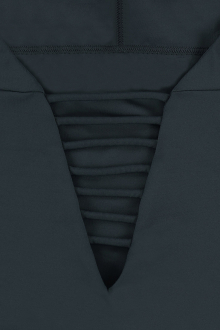 背中のスリット部分に施したストラップは、視覚的に美しいラインを生み出すだけでなく、動いた際のフィット感を高めてくれる実用性も兼ね備えています。