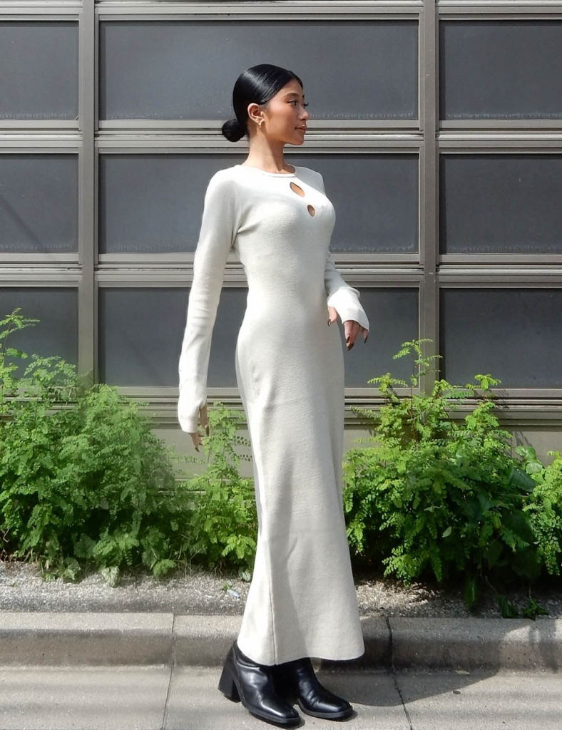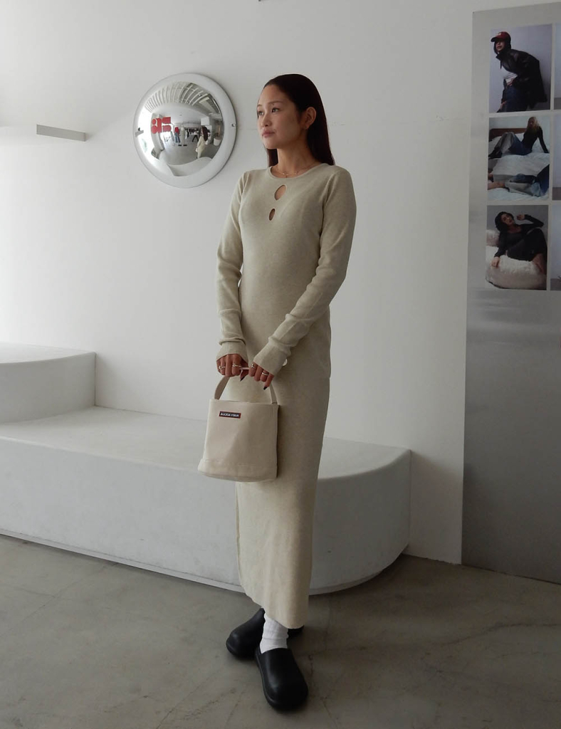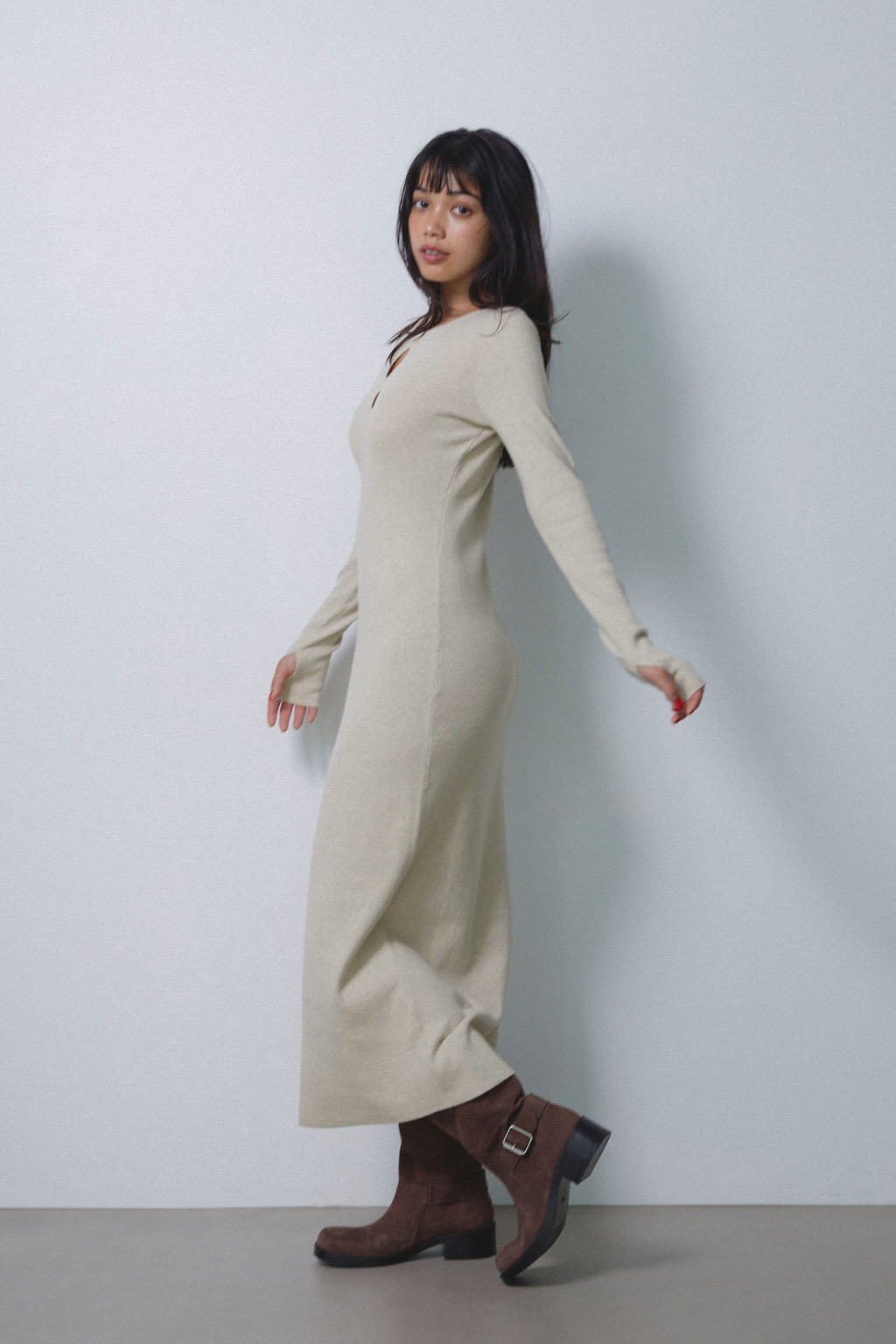 シンプルながら洗練感漂う、前後2wayニットワンピース。