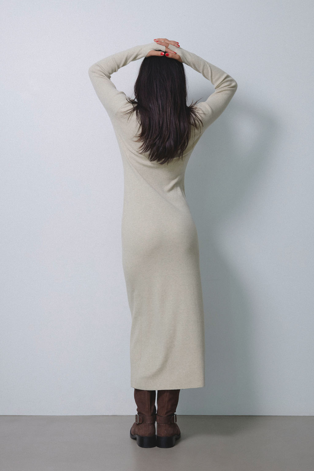 伸縮性のある柔らかなニット素材で、体のラインを美しく演出します。