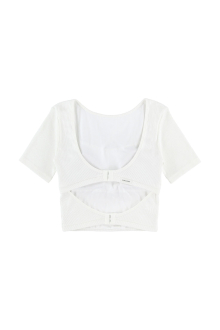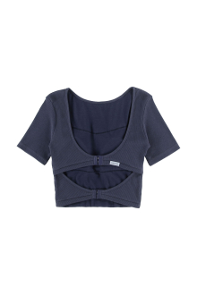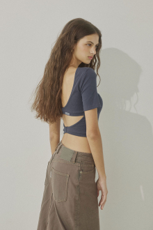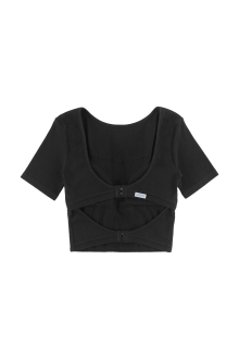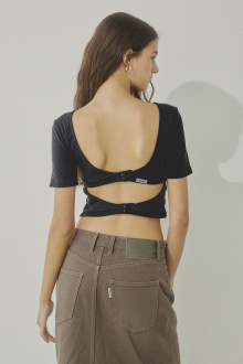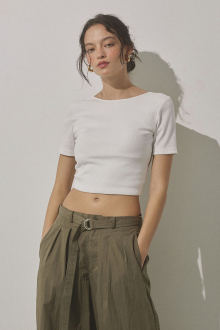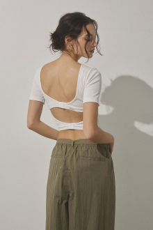 背中のダブルホックが目を惹く、人気のトップスから半袖タイプが初登場。