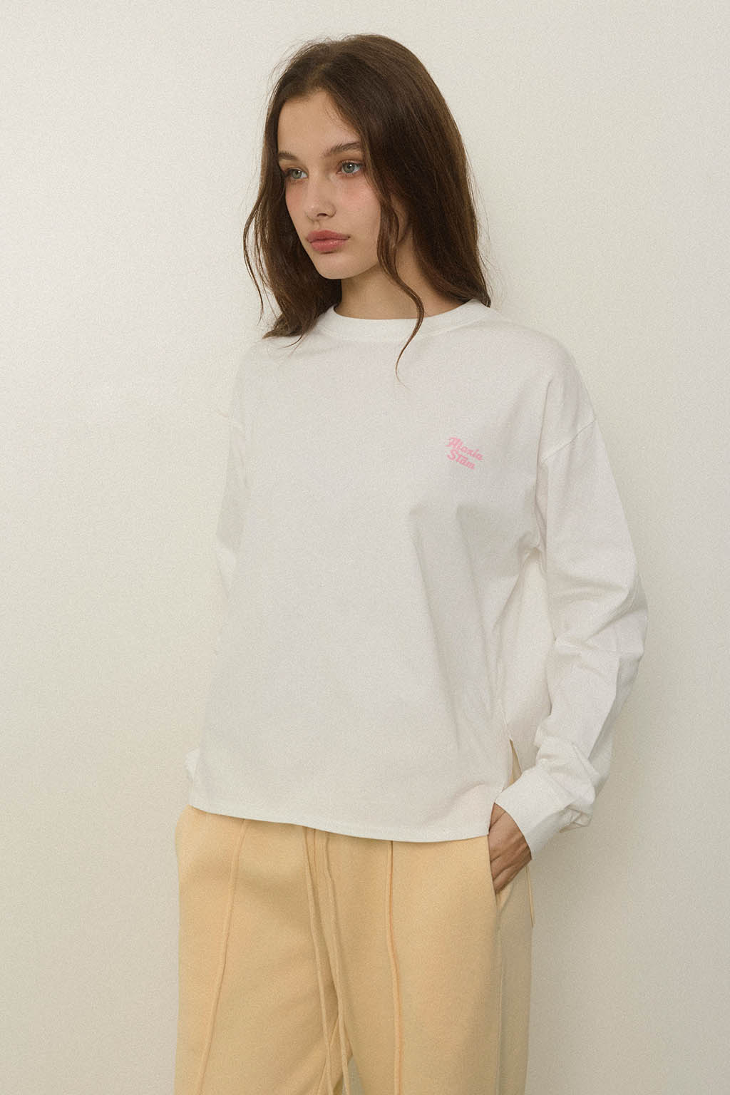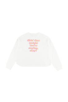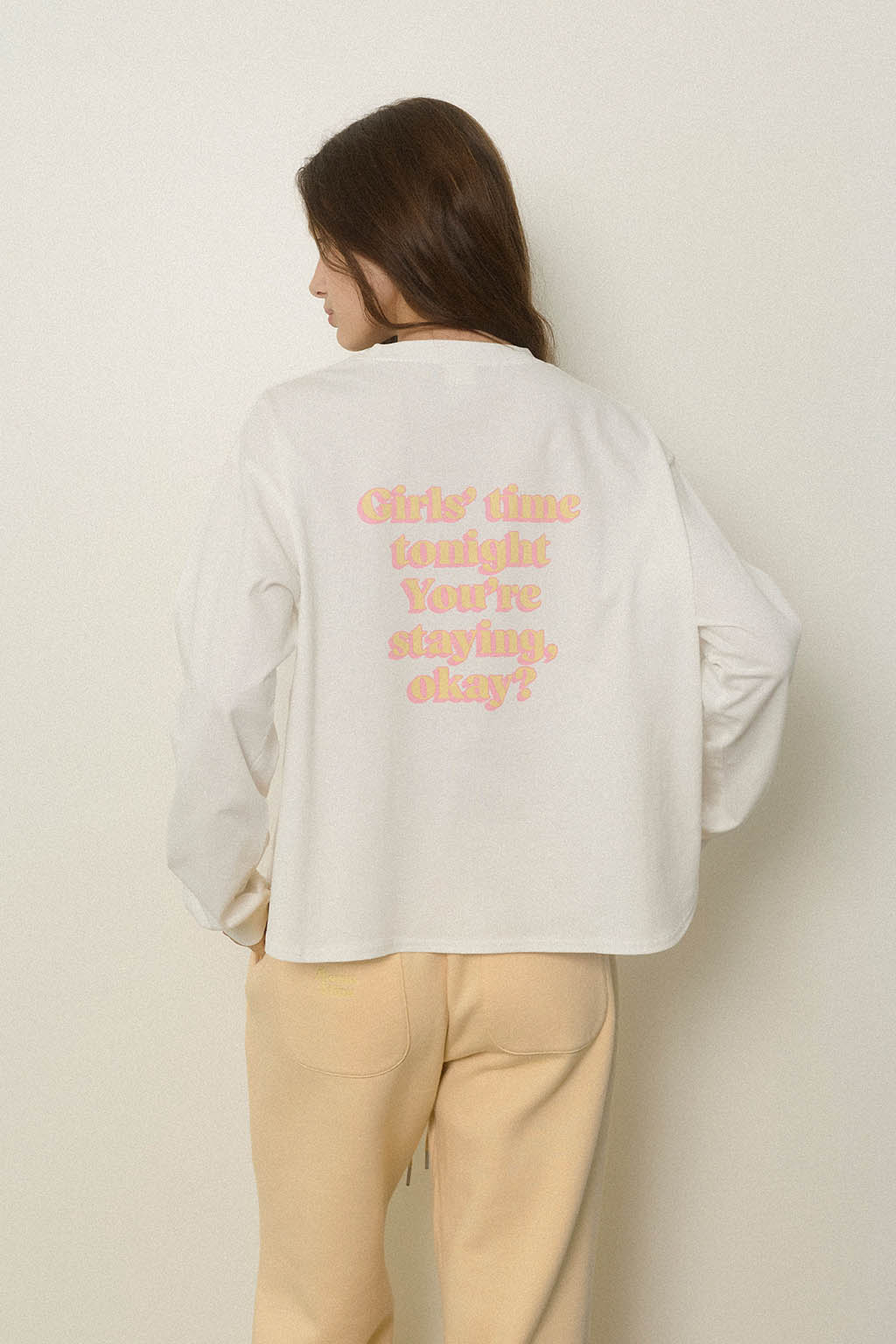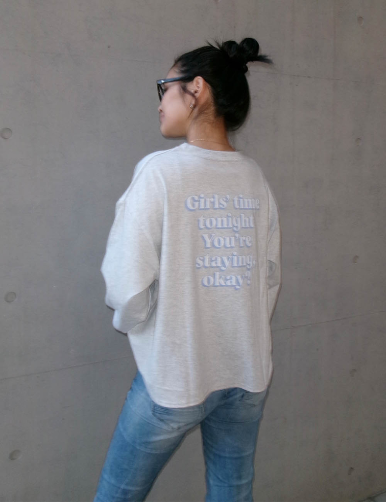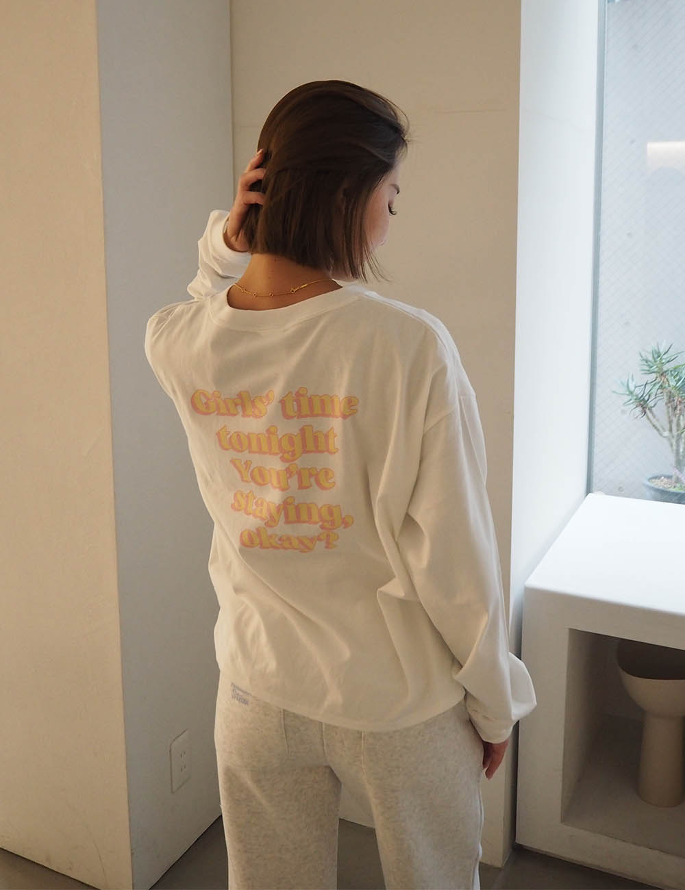 バックのロゴメッセージが目を惹く、シンプルなロングスリーブTシャツ。