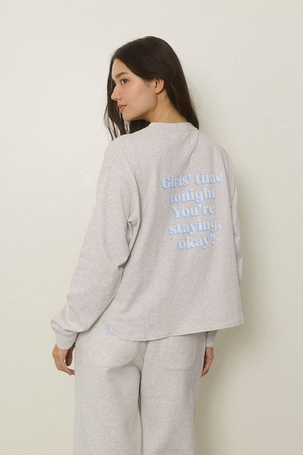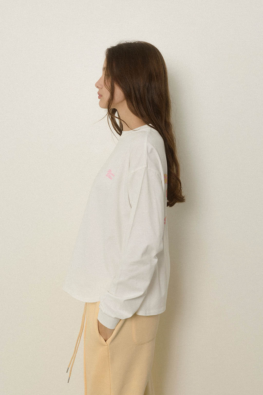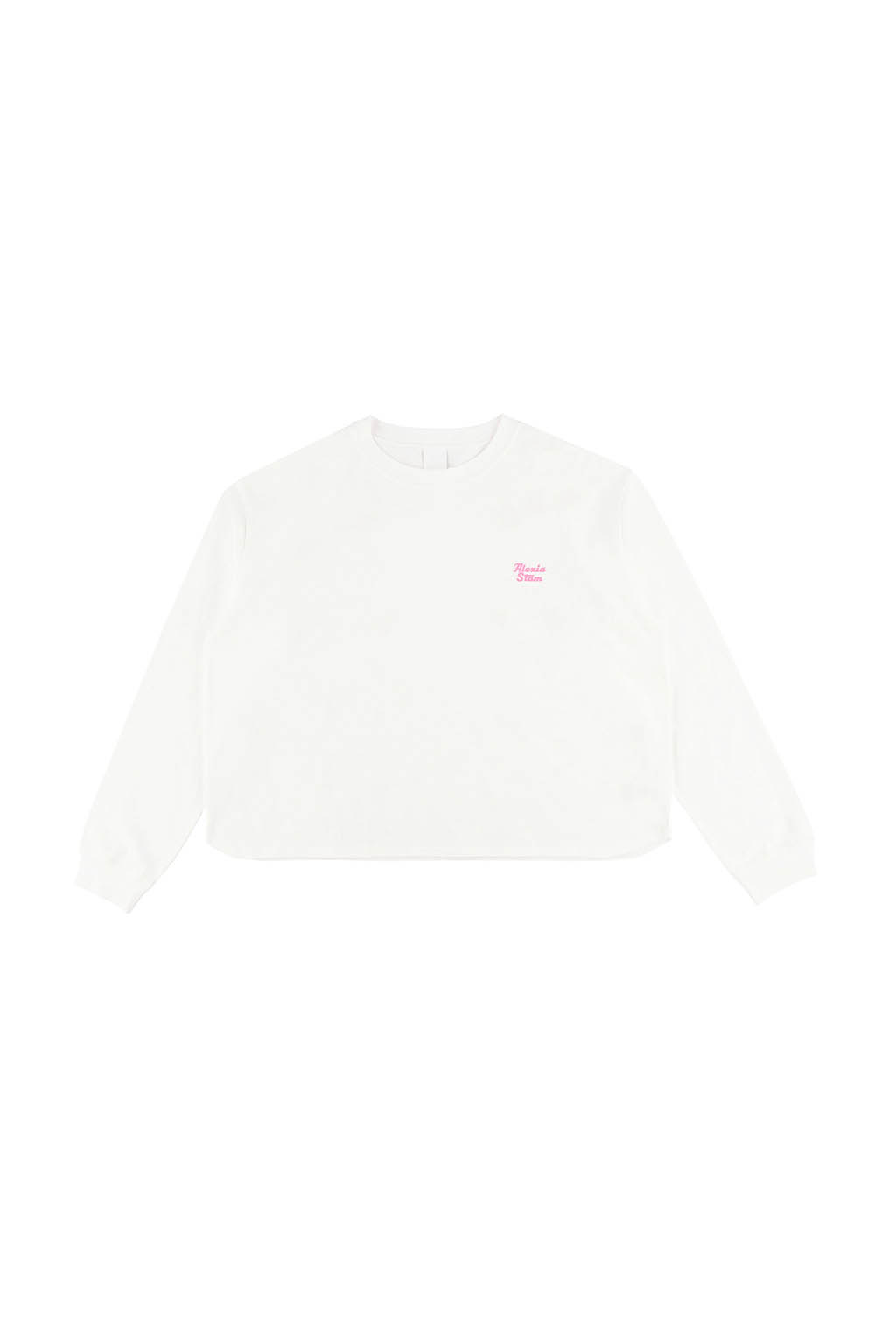 バックのロゴメッセージが目を惹く、シンプルなロングスリーブTシャツ。
