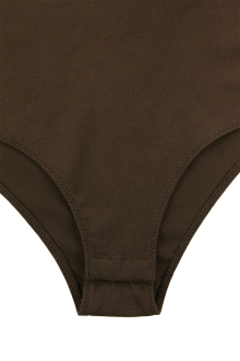 背中開きのデザインが後ろ姿のアクセントになるロンパース。