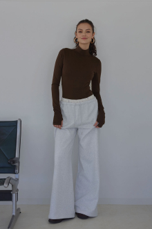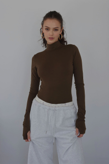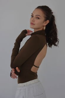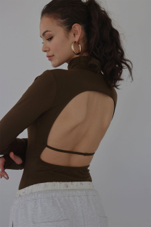首元はハイネックになっており、スタイリングに落ち着いた印象を与えます。