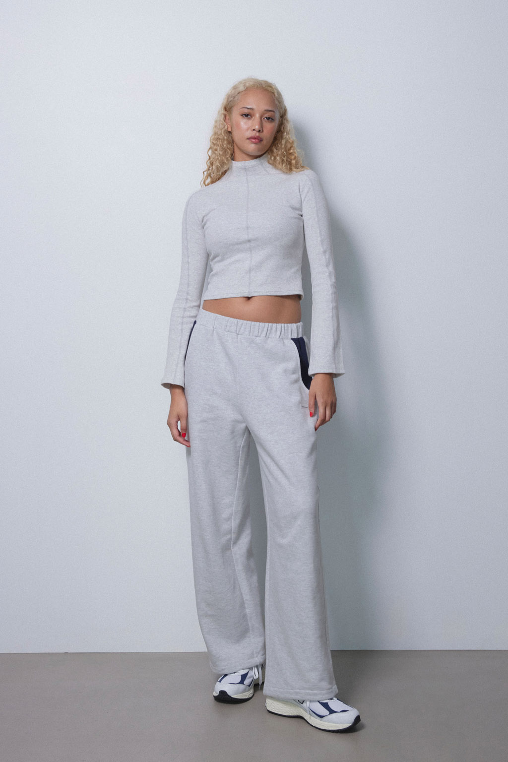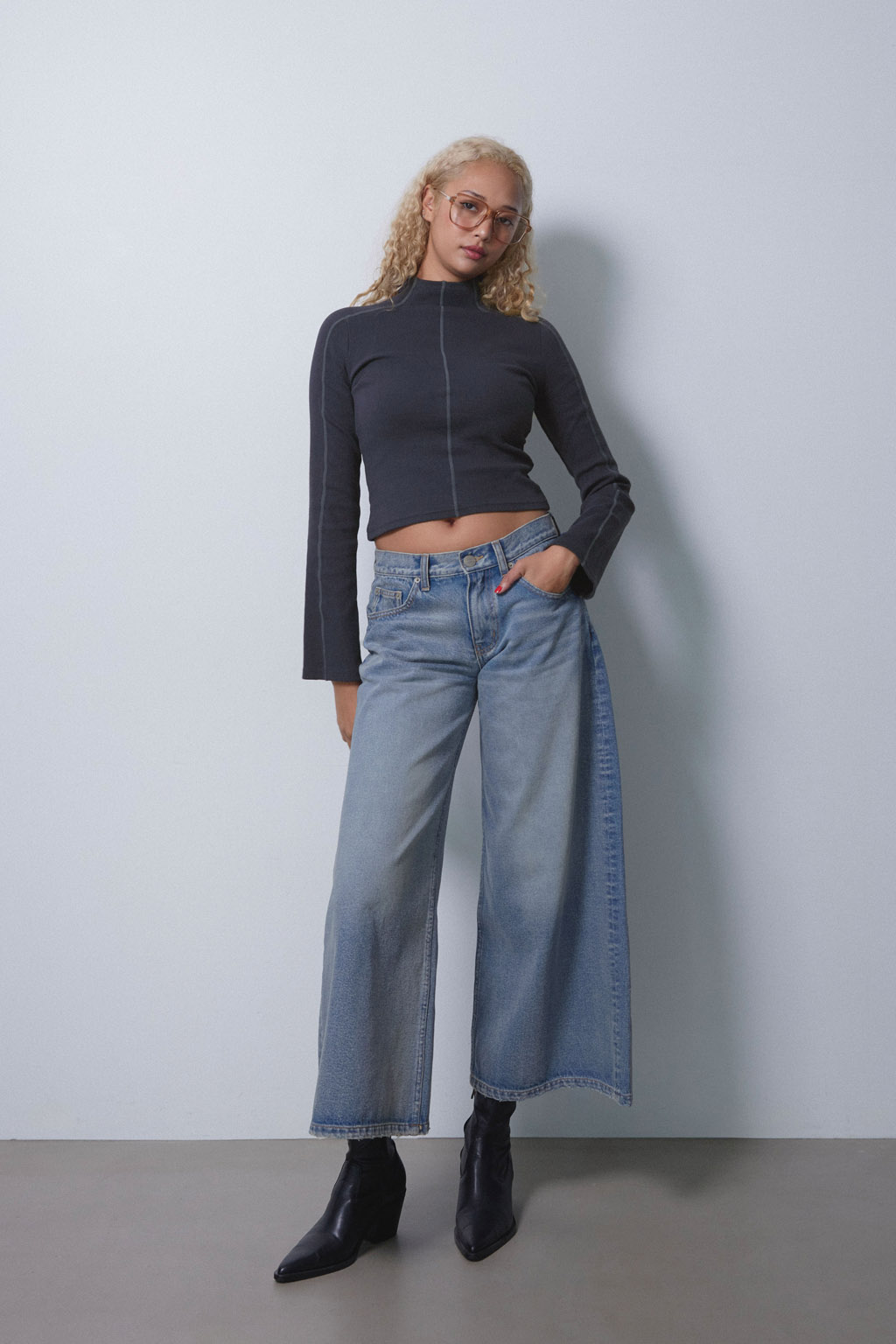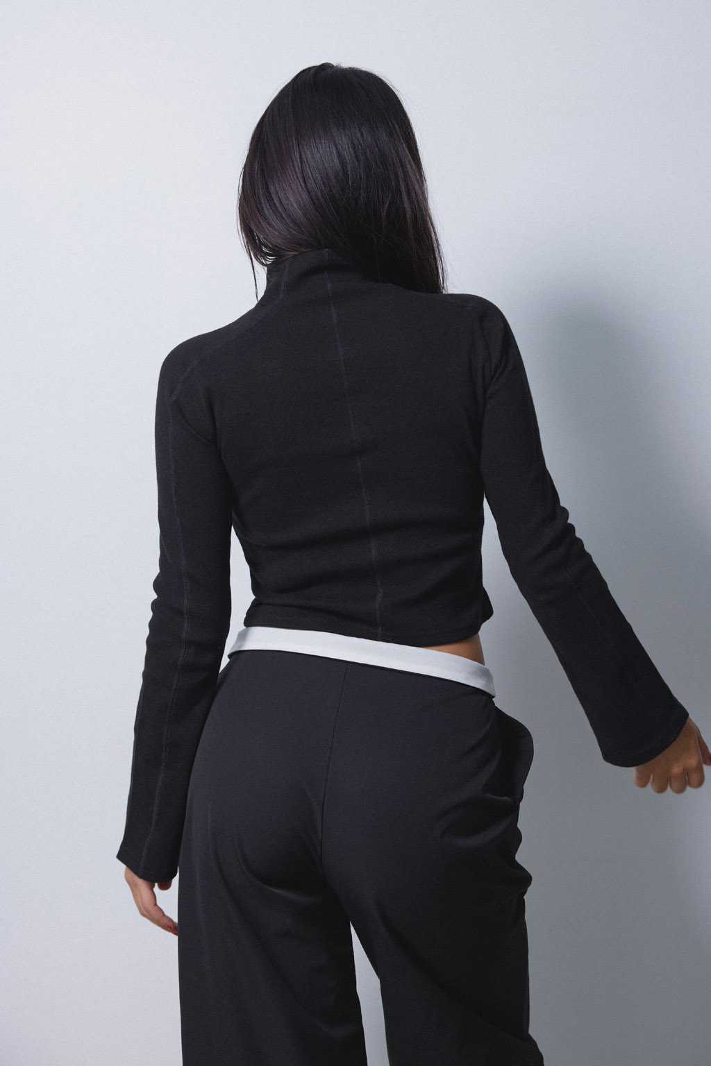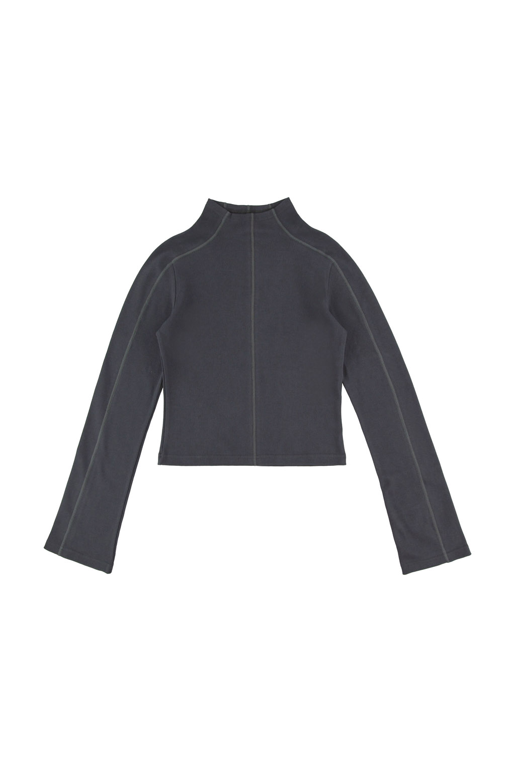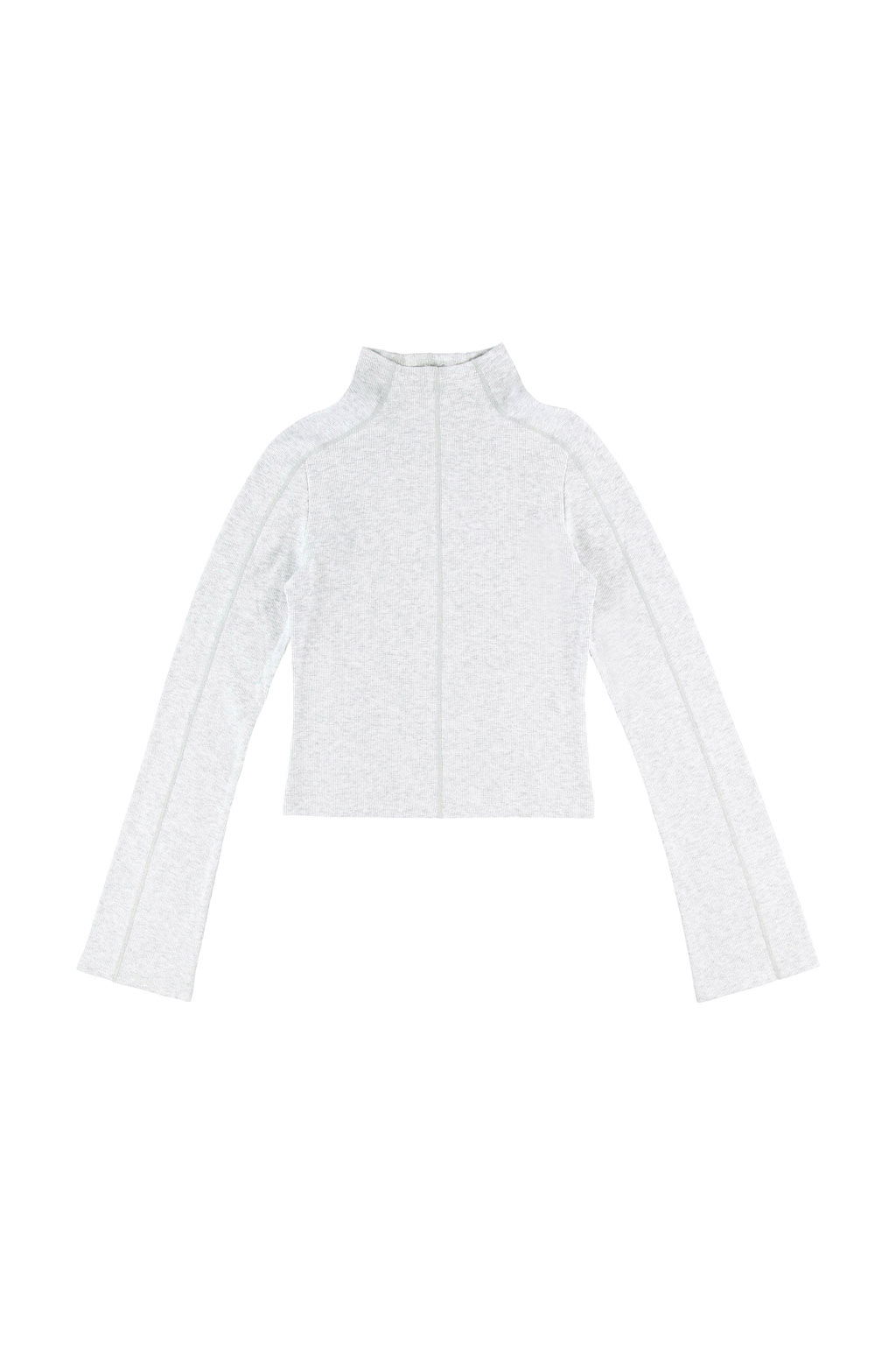 クロップド丈ですっきりと仕上げたハイネックロングスリーブトップス。
