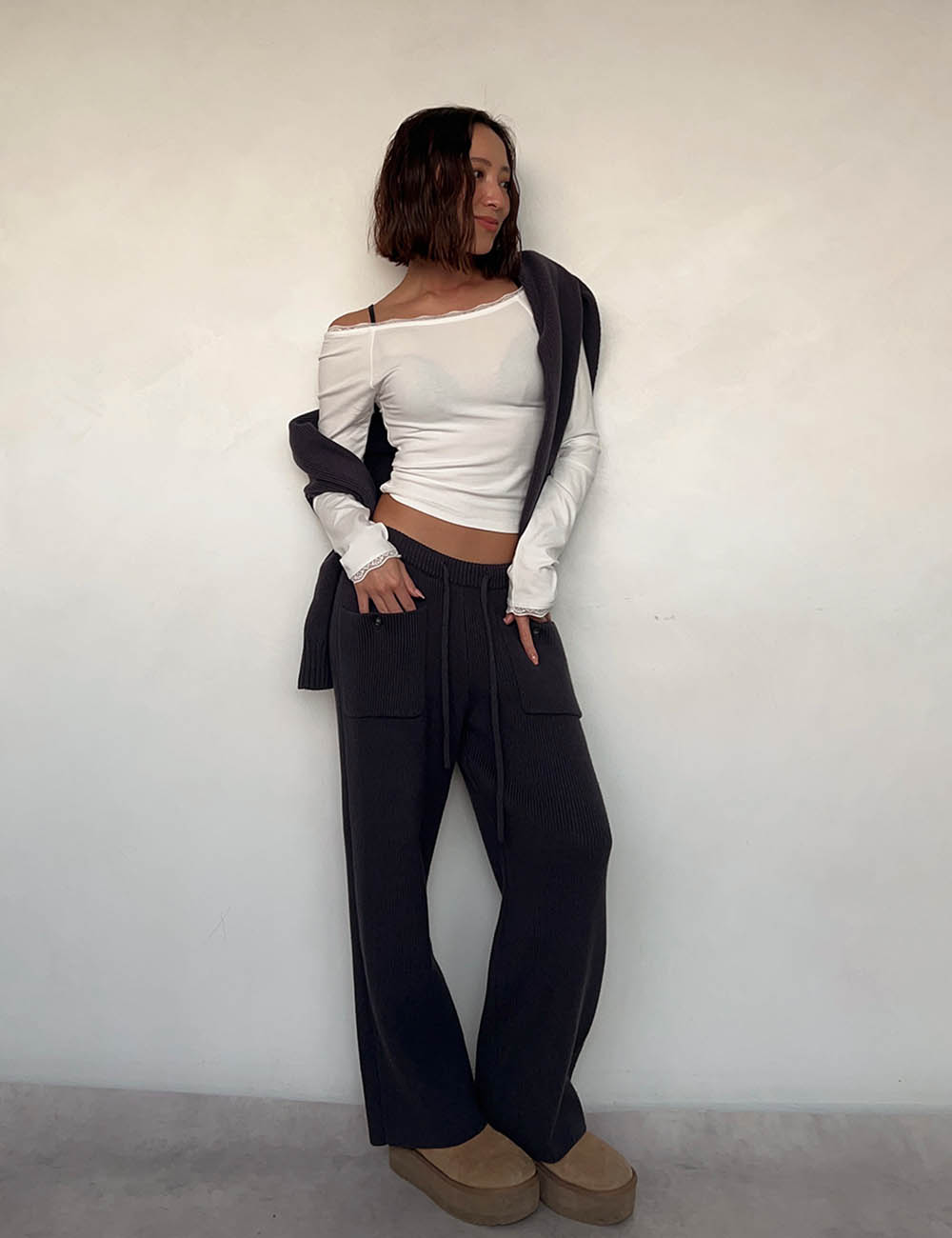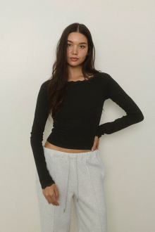 伸縮性があり、程よくフィットするリブ素材で一枚でもレイヤードでも活躍します。