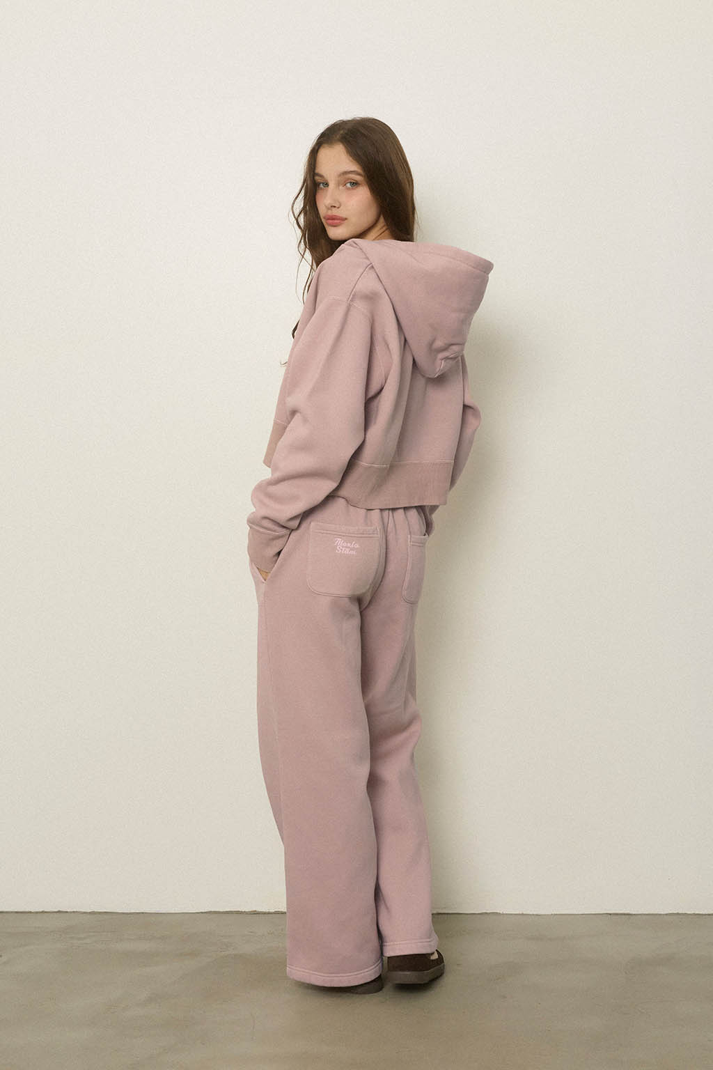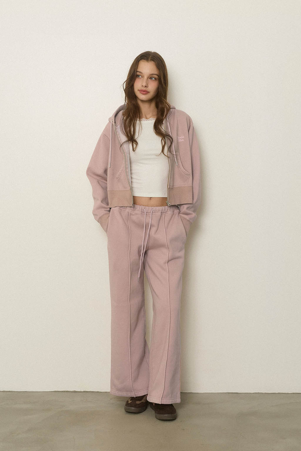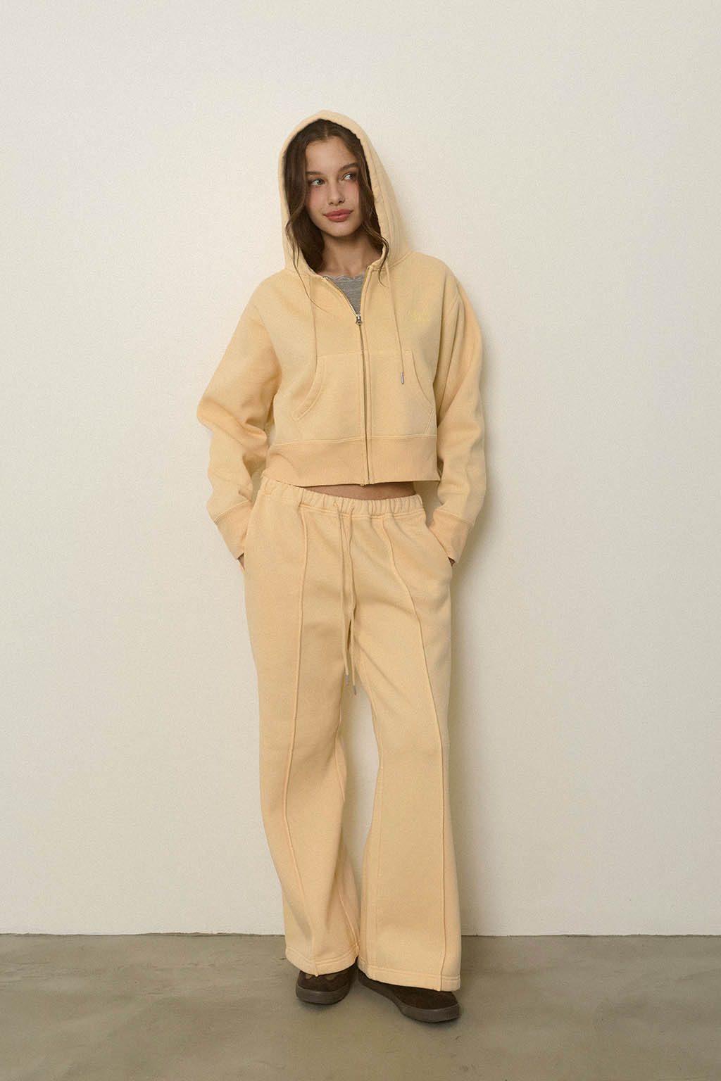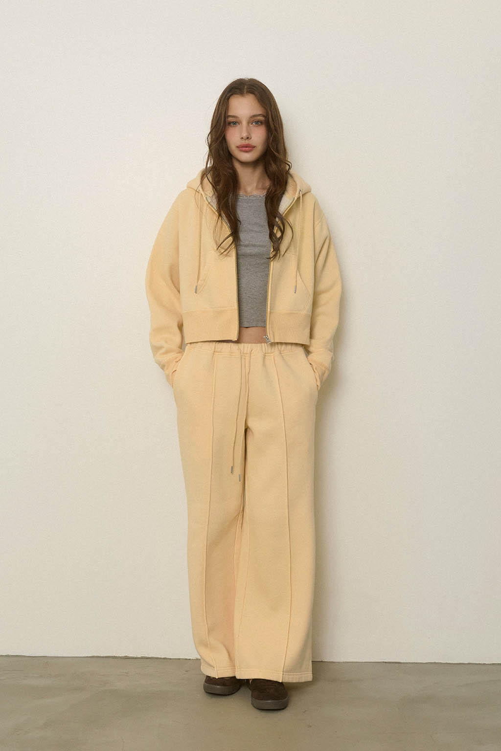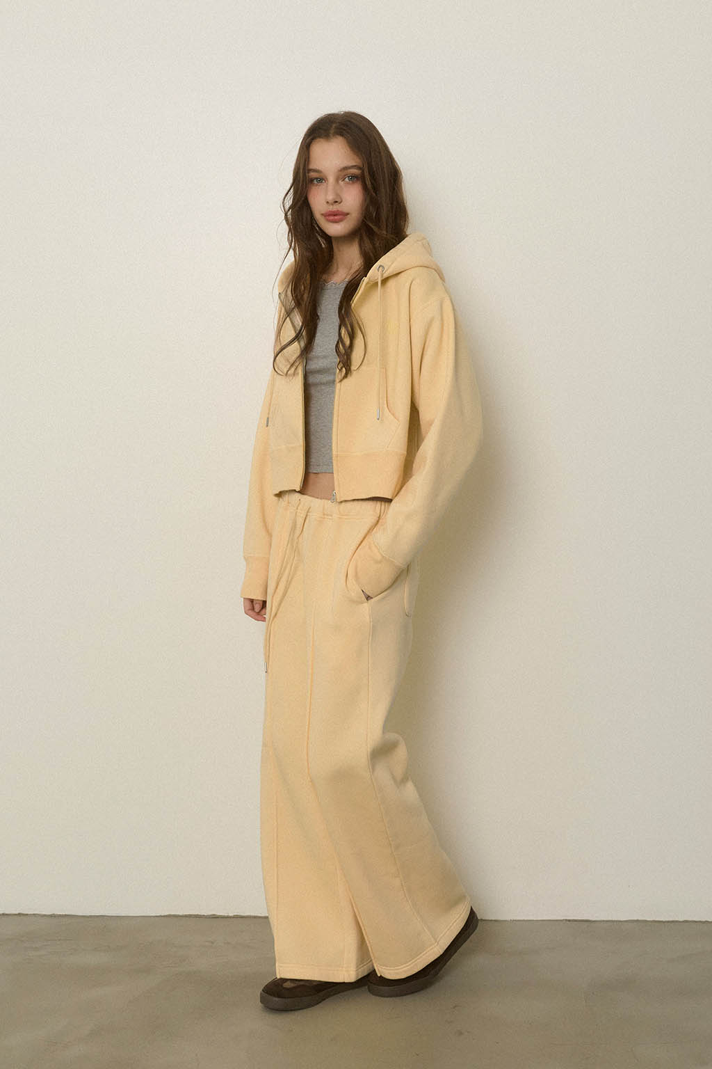 同素材のWellness Zip Up Hoodieと合わせた、セットアップコーデもおすすめです。