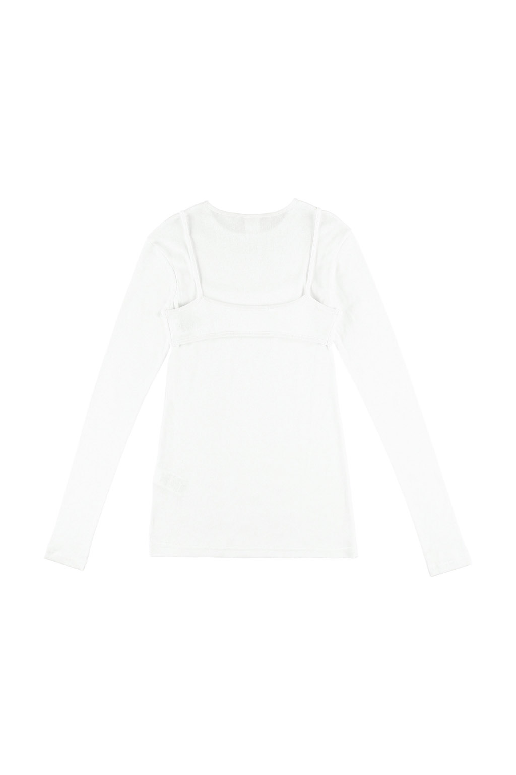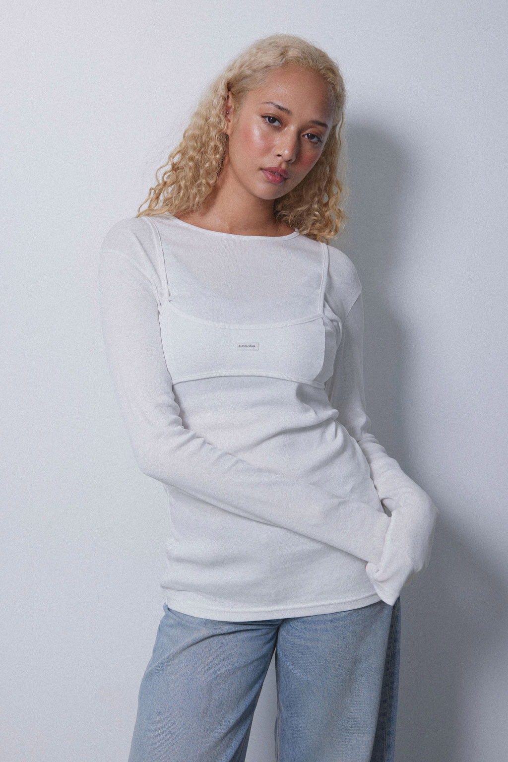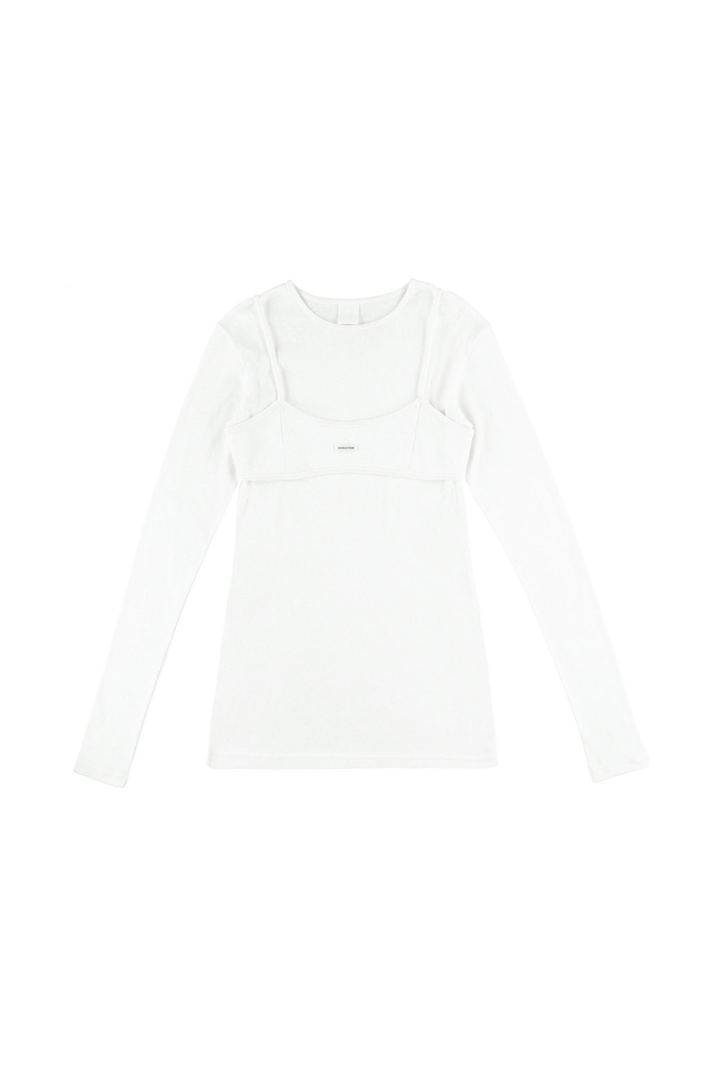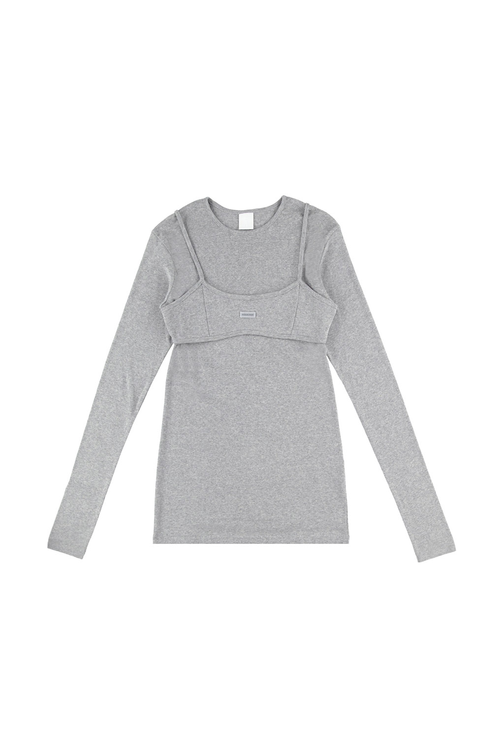 シリコンタグをフロントにあしらったブラトップ付きで、シンプルながらも旬な着こなしを演出します。