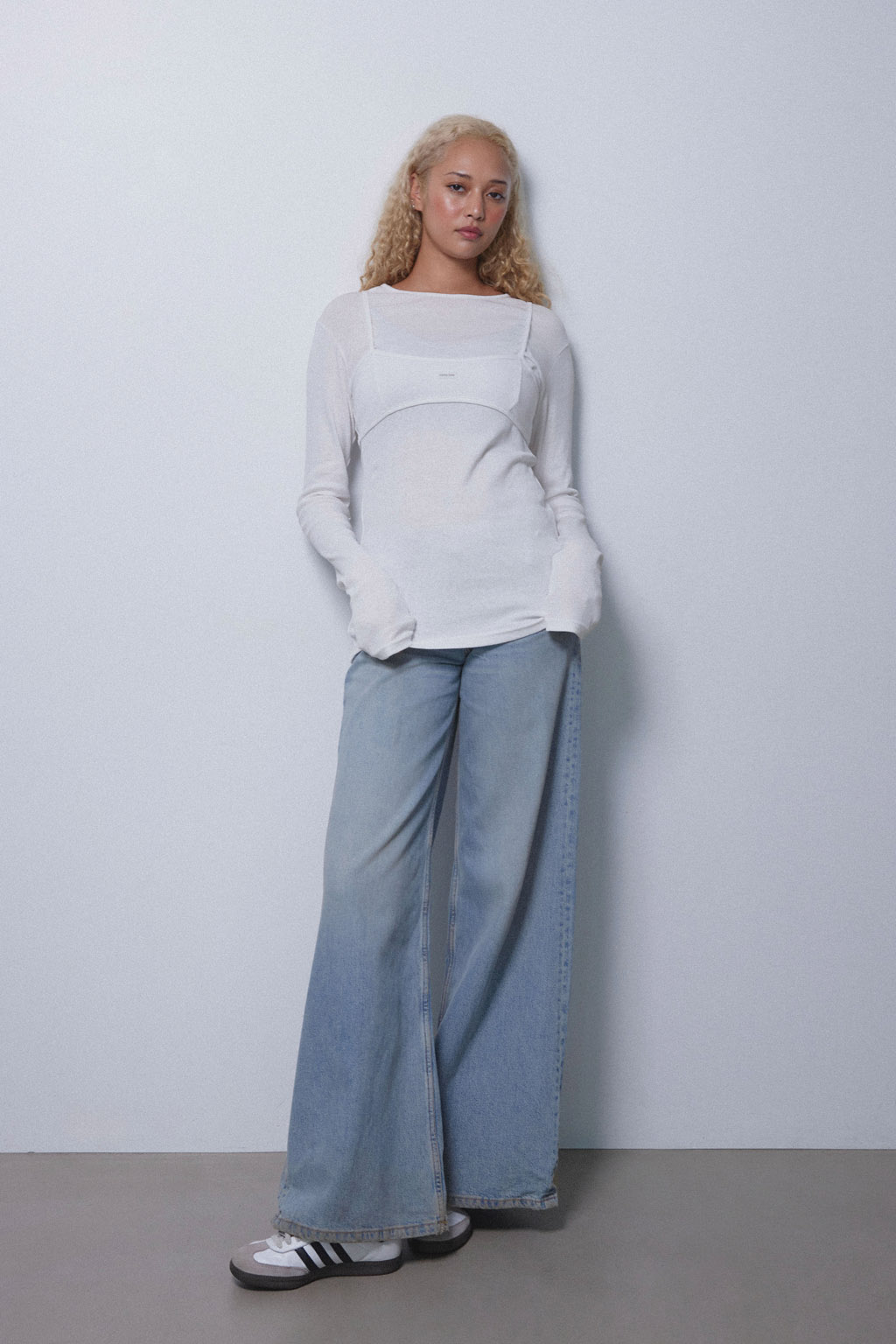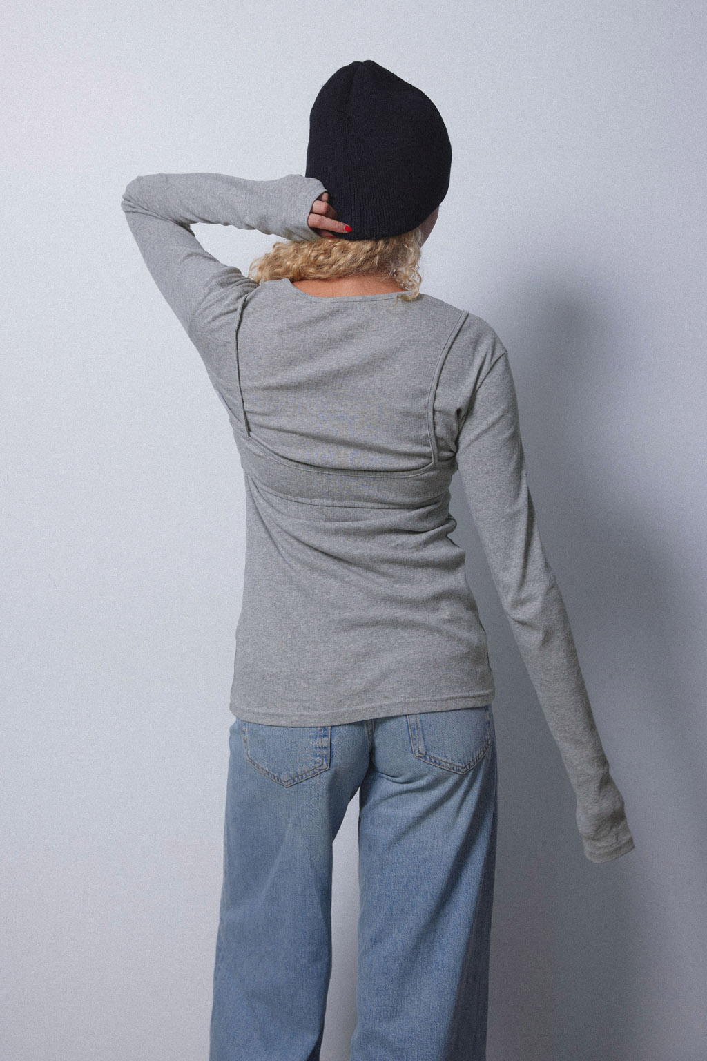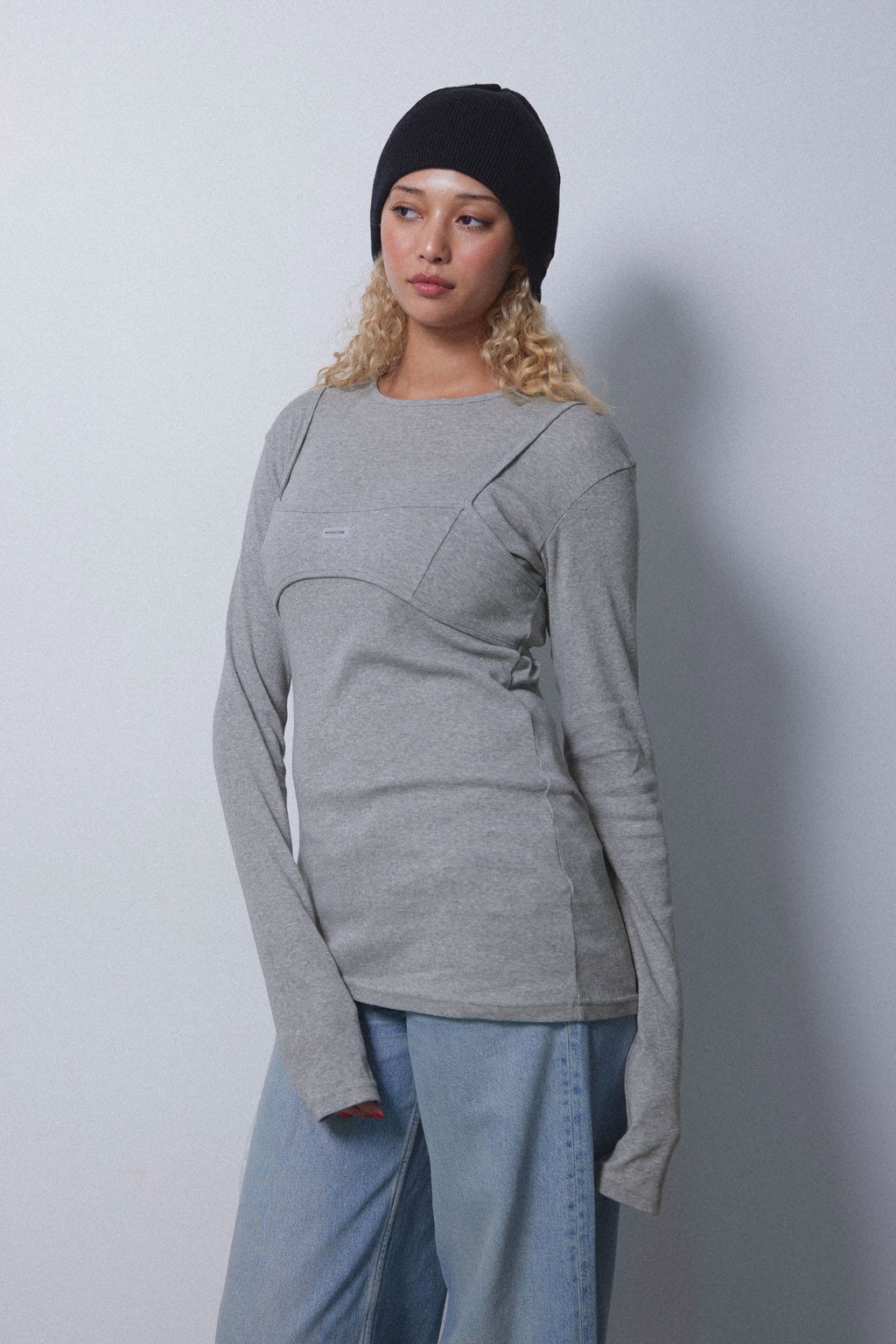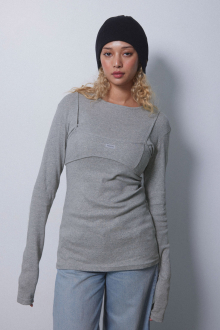 スポーティなレイヤードスタイルが魅力的なロングスリーブトップス。