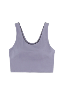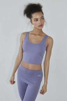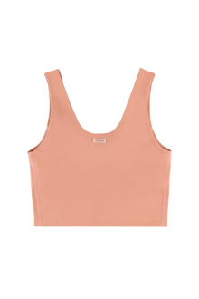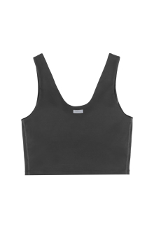 深めのネックとクロップド丈がポイントになったタックトップ。