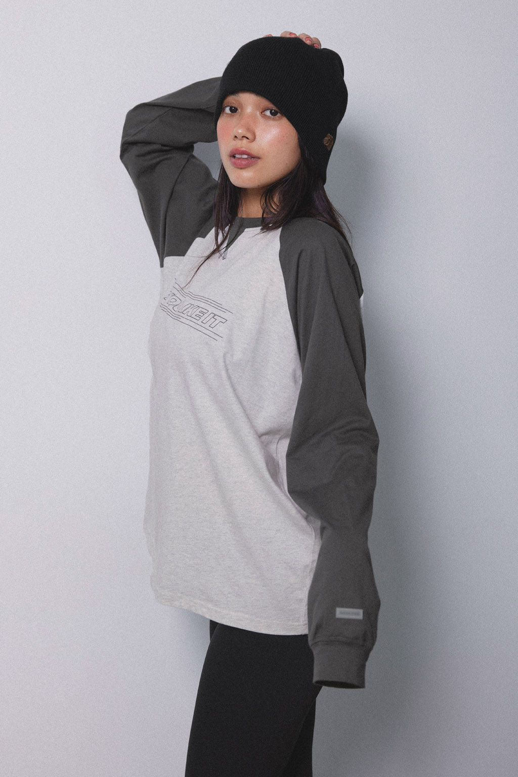 スポーティな配色スリーブが印象的なロングスリーブTシャツ。