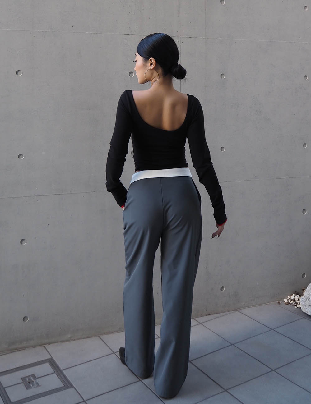 ウエストの折り返しデザインが、アクセントになる裏起毛パンツ。
