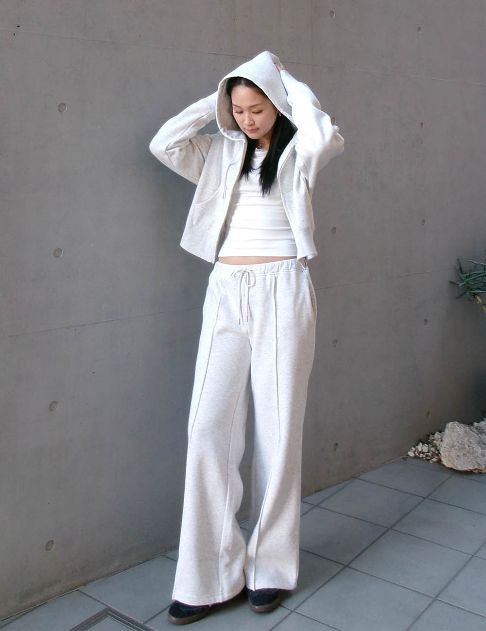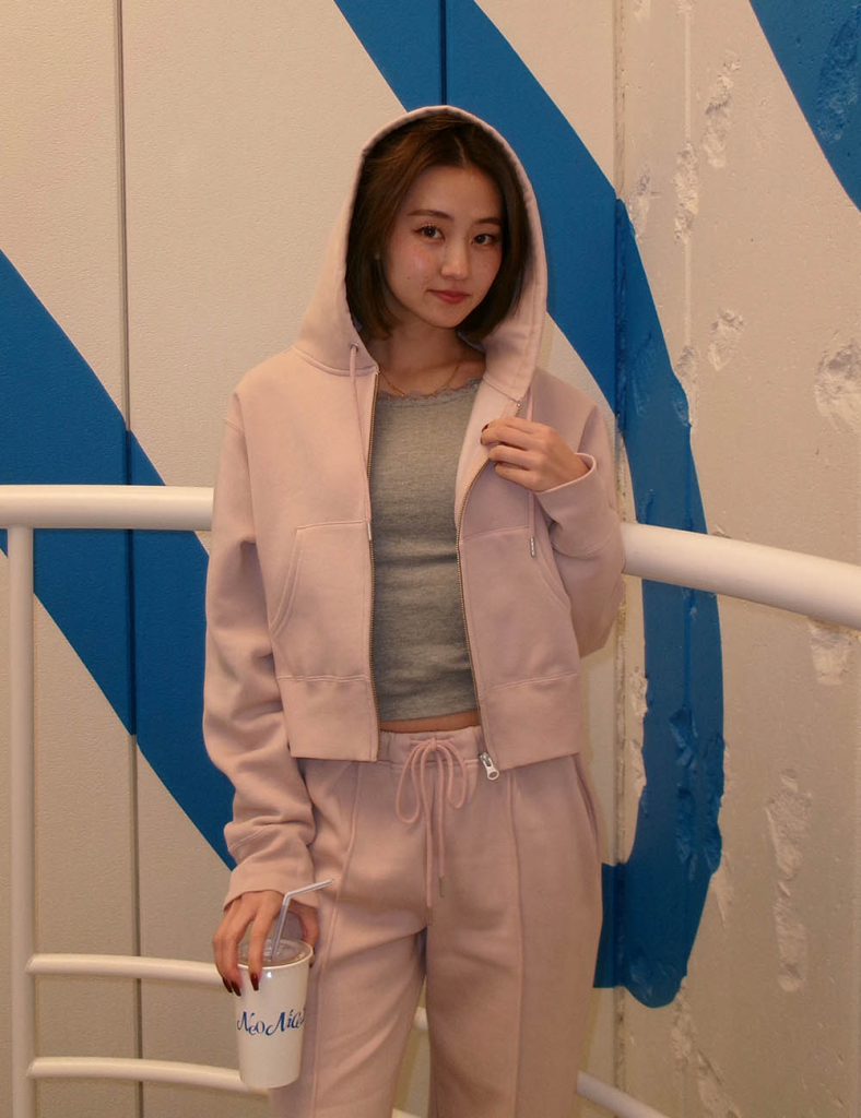 柔らかなスウェット素材で仕上げたジップアップパーカー。