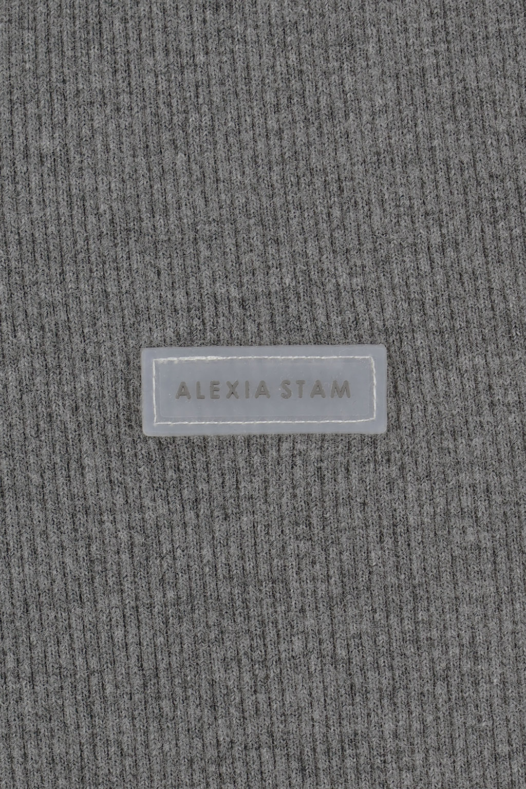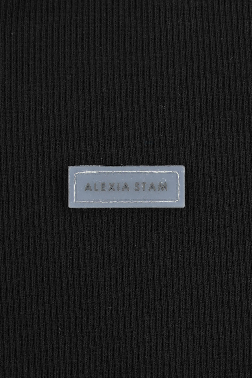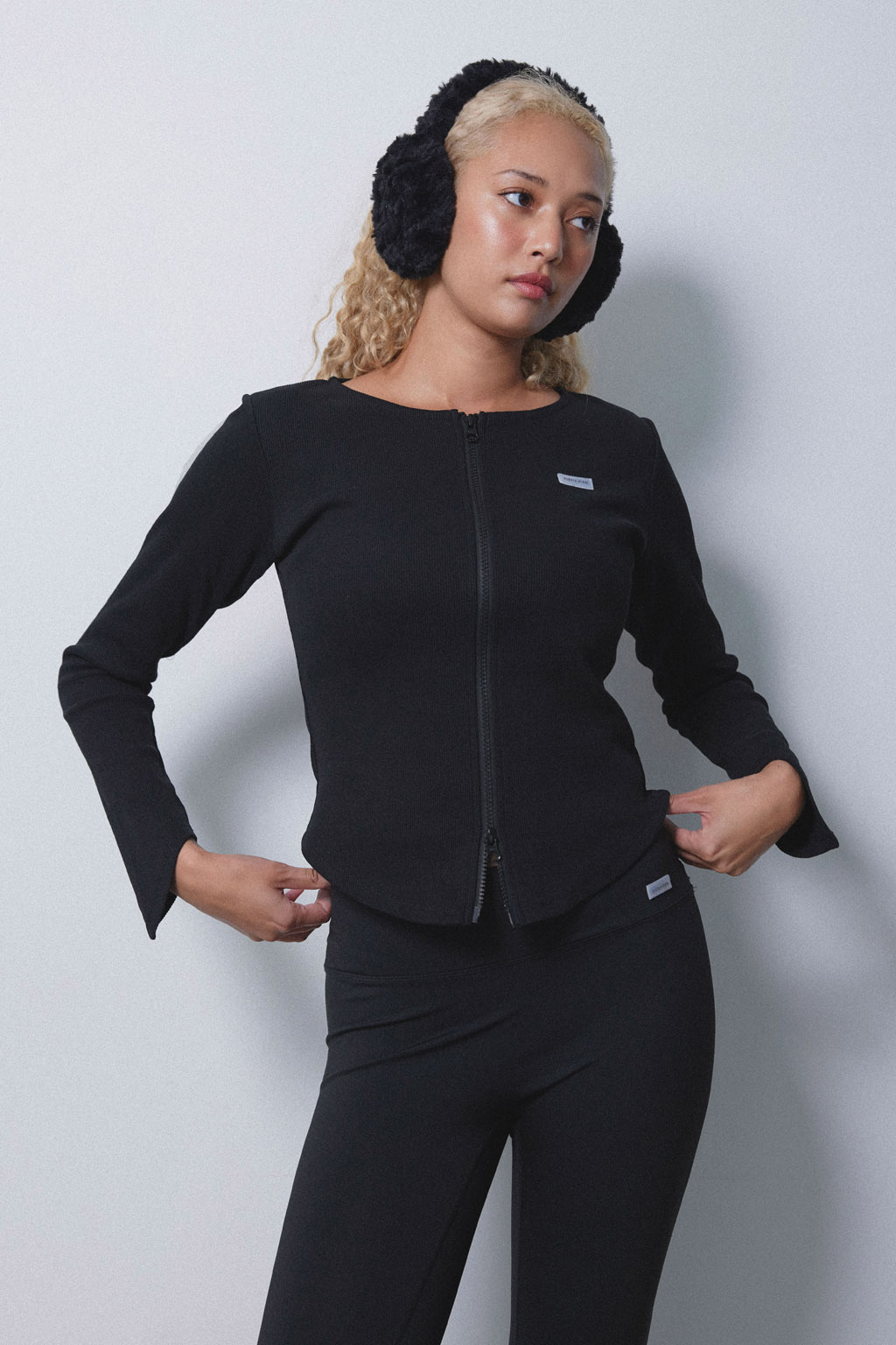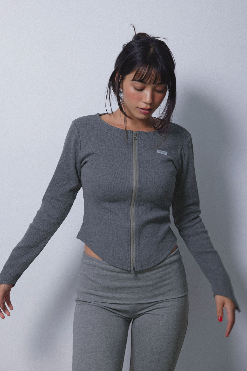 胸元にシリコンネームタグを施した、ジップアップトップス。