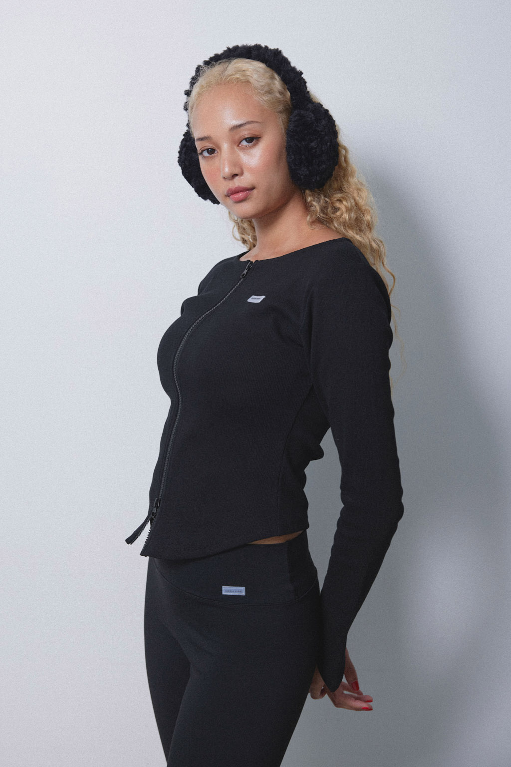 フロントはダブルジップ仕様で、スタイリングに合わせて様々な表情に。