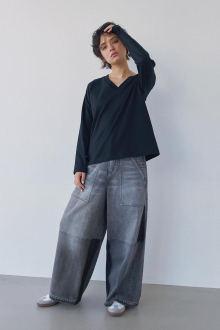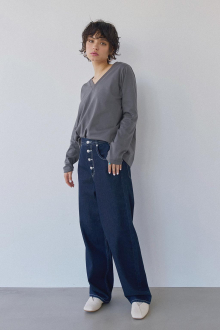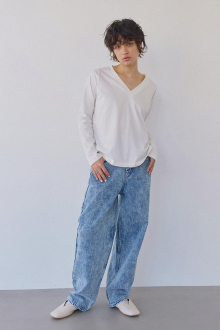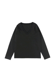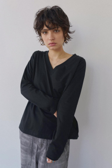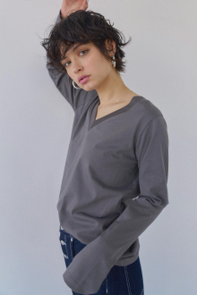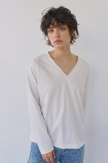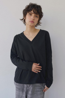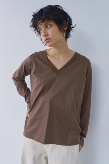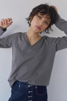 A V-neck long sleeve tee from the ALEXIA BASIC series that makes your face look neat and sharp.