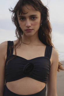Florence captivates with an elegant rose motif and a sensual under-bust cut-out that reveals just enough skin while the waist remains securely covered. The balanced design accentuates feminine curves, and a dramatic drape with a bold rose ornament at the hip lends a classic, sophisticated touch. Perfect for luxe resort getaways, city pools, or hotel retreats alike.