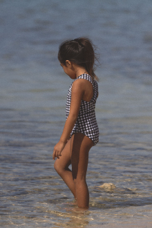 PF50+のUVカット素材を使用し、小さなビーチガールへのスペシャルなビキニです。