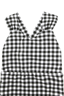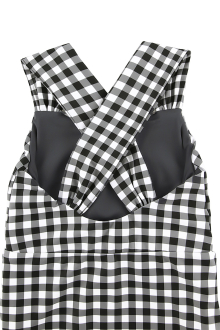 中心にギャザーが入った太めのストラップと、背中のクロスデザインが特徴的です。