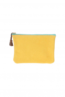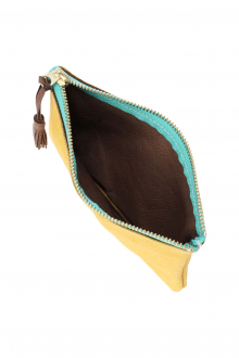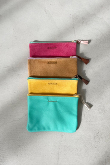 柔らかい質感の革に加工を施した、しっかりとした生地感のポーチ。